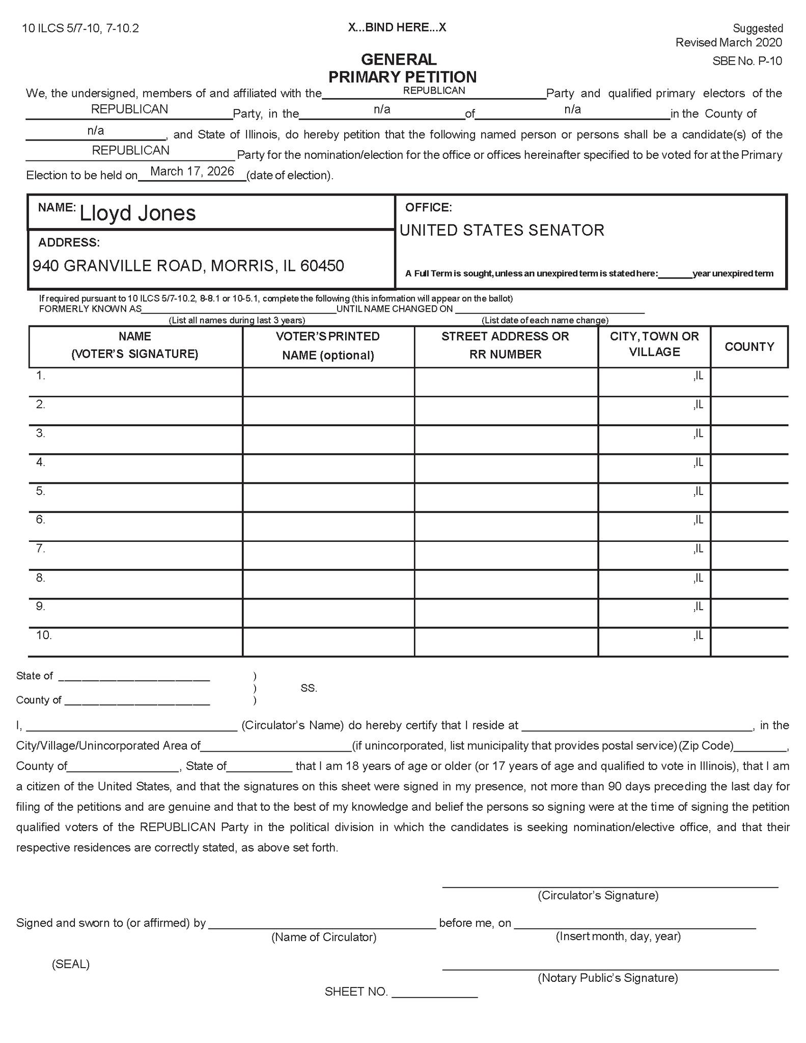 | Andy Williams Jr (R) Andy Williams Signature Petition (R) Joe Cervantez Signature Petition (R) Bob Fioretti Signature Petition (R)